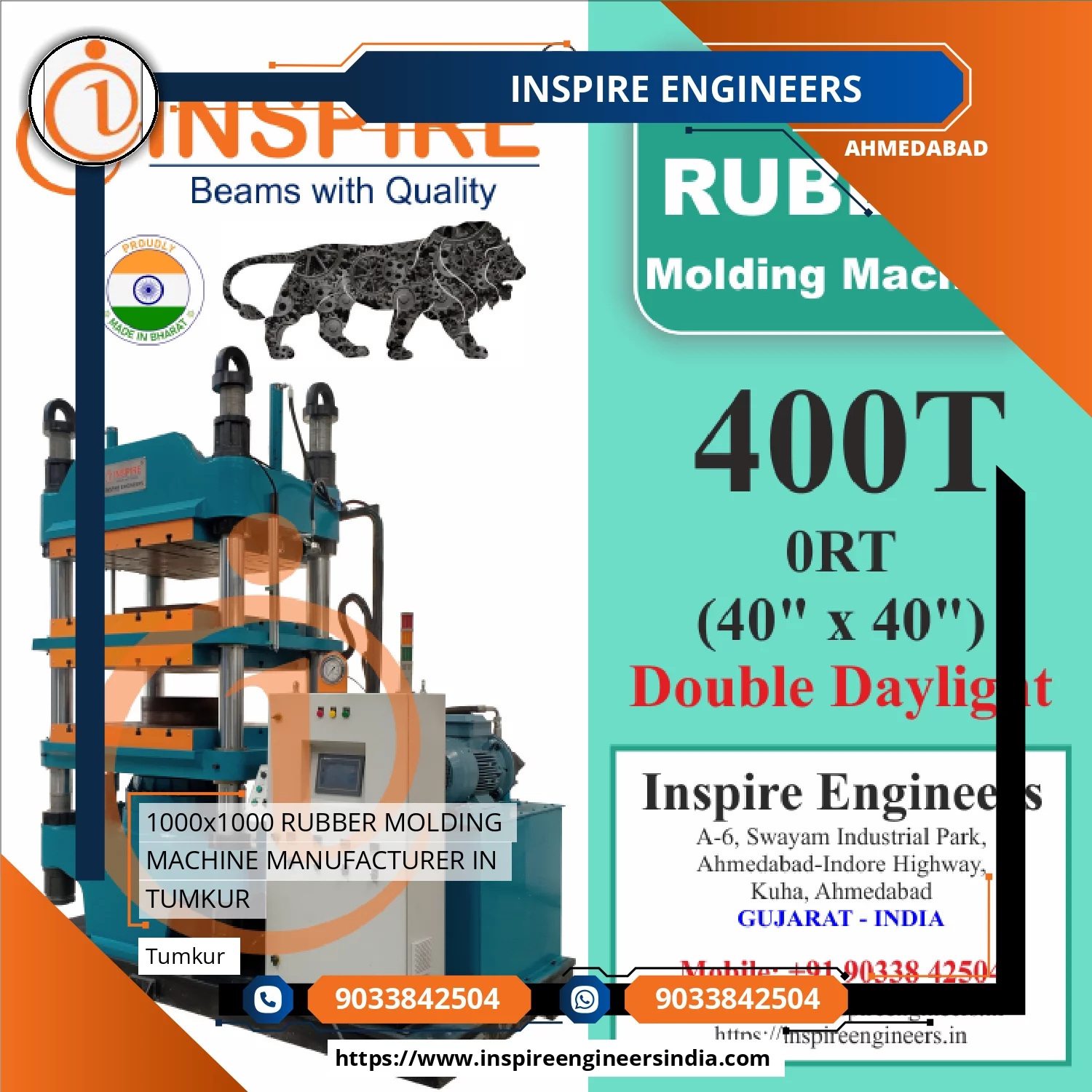 Inspire Engineers is leading 1000x1000 RUBBER MOLDING MACHINE MANUFACTURER IN TUMKUR with plant in Gujarat.